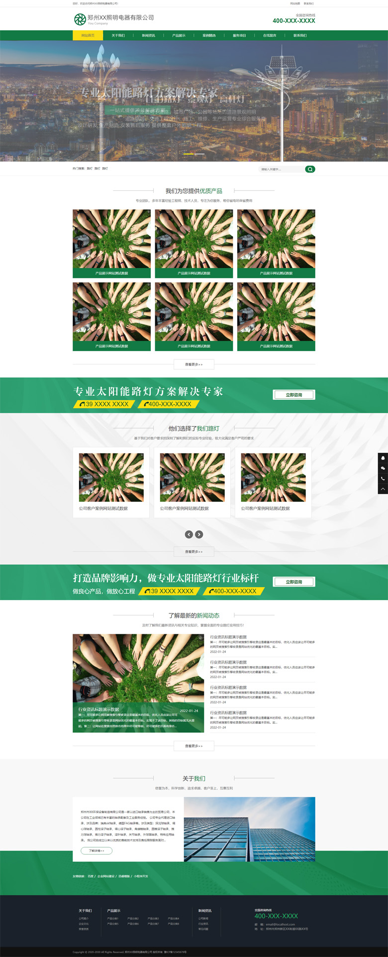 绿色路灯照明环保设备、体育健康用品产品类企业网站自适应主题模板