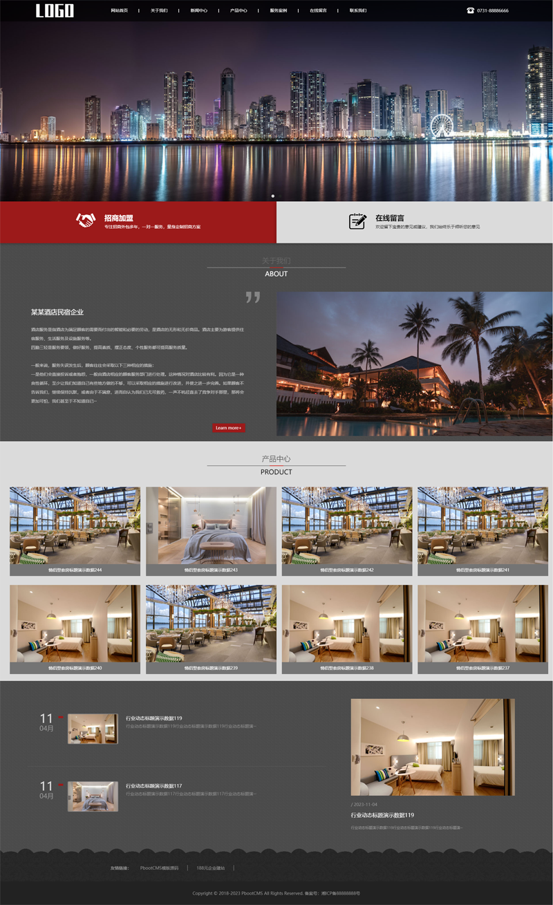 响应式酒店民宿住宿企业pbootcms网站模板,适用于酒店、旅游民宿、住宿使用。