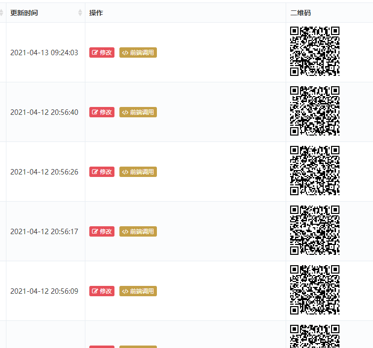 迅睿CMS在后台列表增加链接二维码的设置,可以用于查验等场景中,生成一对一二维码,扫码进行结果查验。