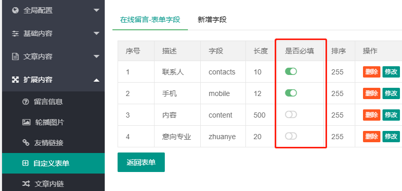 PbootCMS问答:Pb留言字段如何设置必填,不能为空