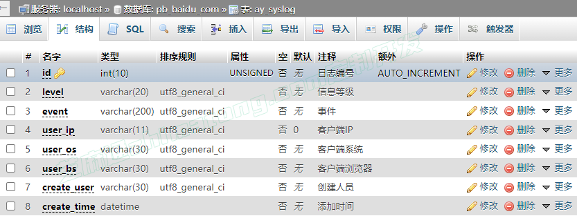 系统日志对应的数据库表为:ay_syslog