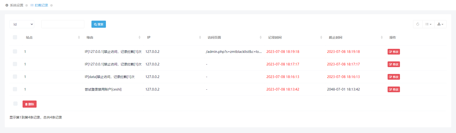 迅睿CMS自定义拦截,IP黑名单拦截版权归属zhimatong.com。