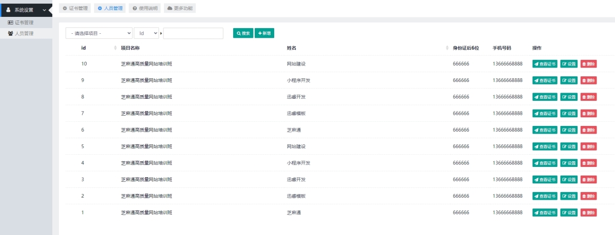 证书查询与证书生成是基于迅睿XunruiCMS程序的插件,由芝麻通团队原创开发。