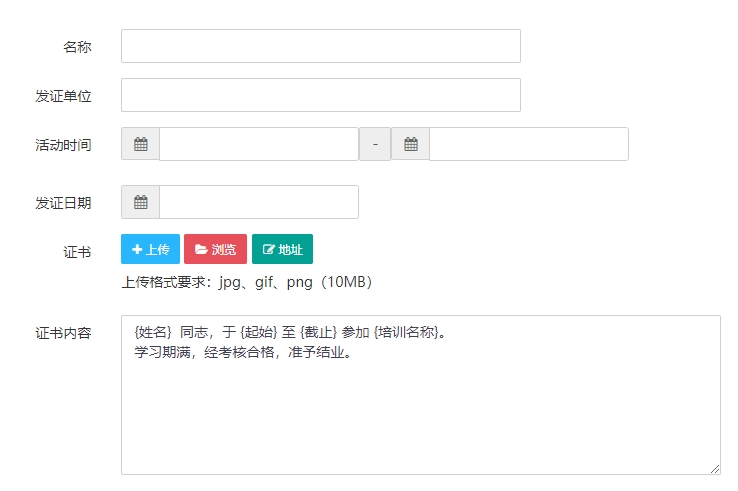 - 项目管理可以设置不同的项目证书,可以设置证书模板,生成图片证书文件;