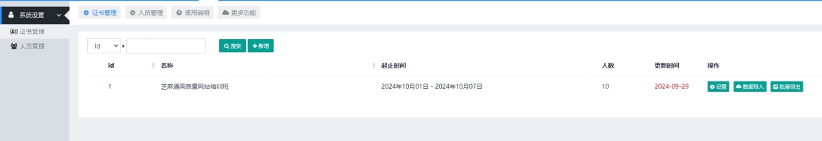 - 数据导出可以批量将单个项目的人员证书批量导出pdf文件,方便批量打印成文件;
